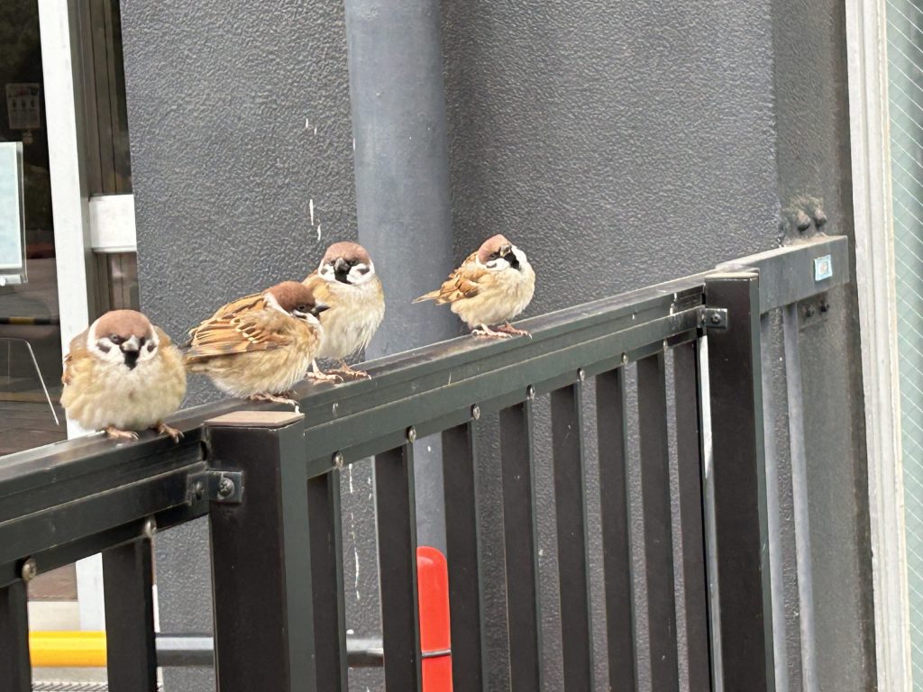 先日、私用で靖国神社へ参拝しに行ったのですが、その途中で出会ったスズメさん達です⛩️